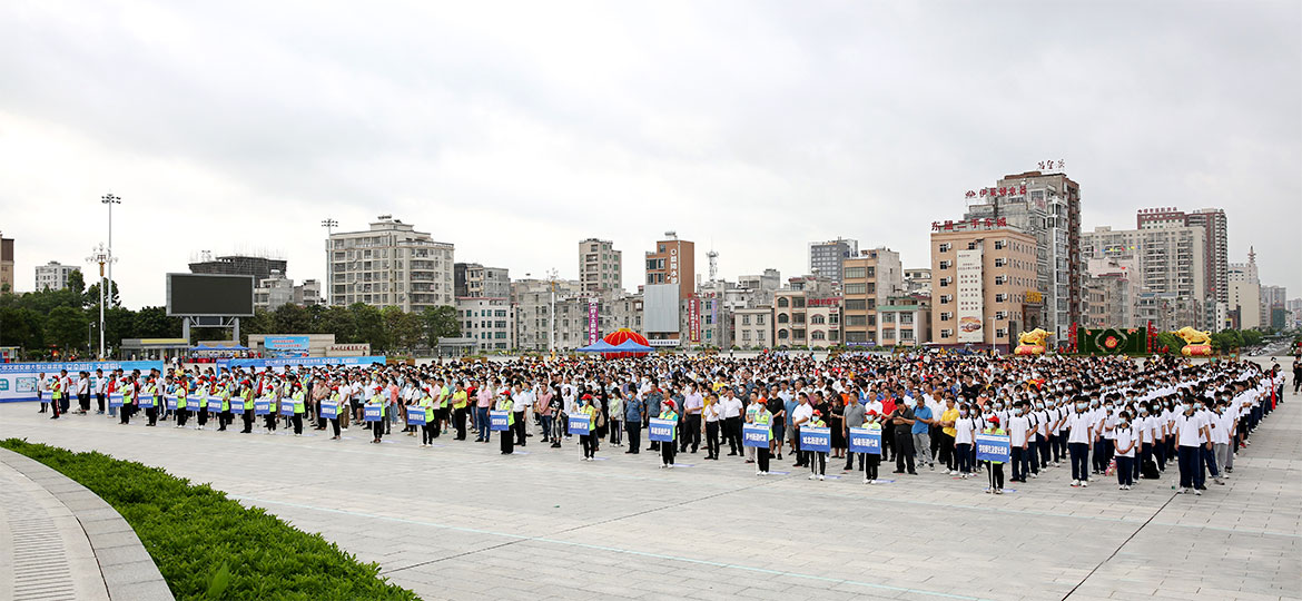 廉江市委常委、宣傳部長、市創(chuàng)建全國文明城市工作指揮部執(zhí)行副總指揮兼市創(chuàng)文辦主任關(guān)維榮,市人大常委會副主任、市總工會主席、市創(chuàng)建全國文明城市工作指揮部執(zhí)行副總指揮李玲,副市長、市公安局長韓靖,市政協(xié)副主席、市創(chuàng)建全國文明城市工作指揮部執(zhí)行副總指揮林炳坤,以及市直副科以上單位代表,街道代表,市公安局交通警察大隊領(lǐng)導和城區(qū)中隊全體干警輔警,快遞、美團、餓了么等行業(yè)代表,學校師生及家長代表,志愿者、社工代表和新聞媒體記者共1600多人參加了此次活動。