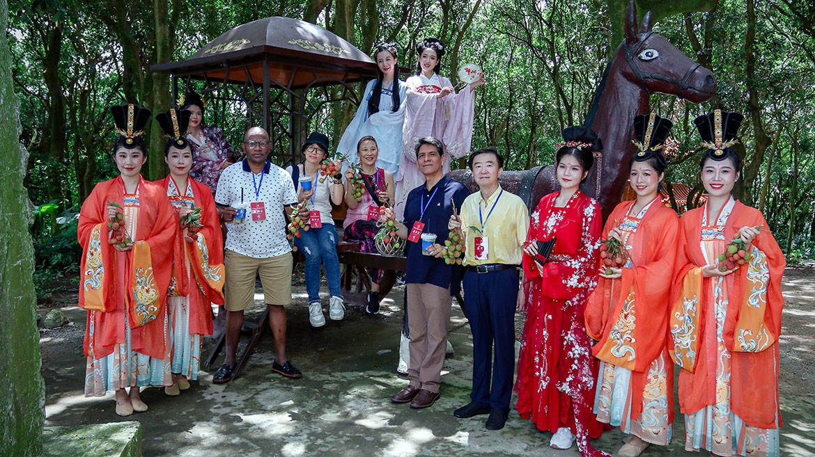 廉江市領(lǐng)導(dǎo)與外國(guó)駐穗領(lǐng)團(tuán)參觀古荔枝林