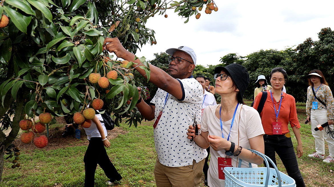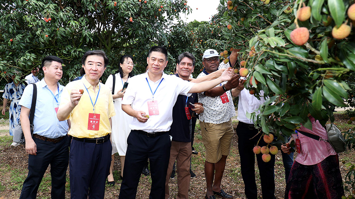 廉江市領(lǐng)導(dǎo)帶領(lǐng)外國(guó)駐穗領(lǐng)團(tuán)采摘荔枝