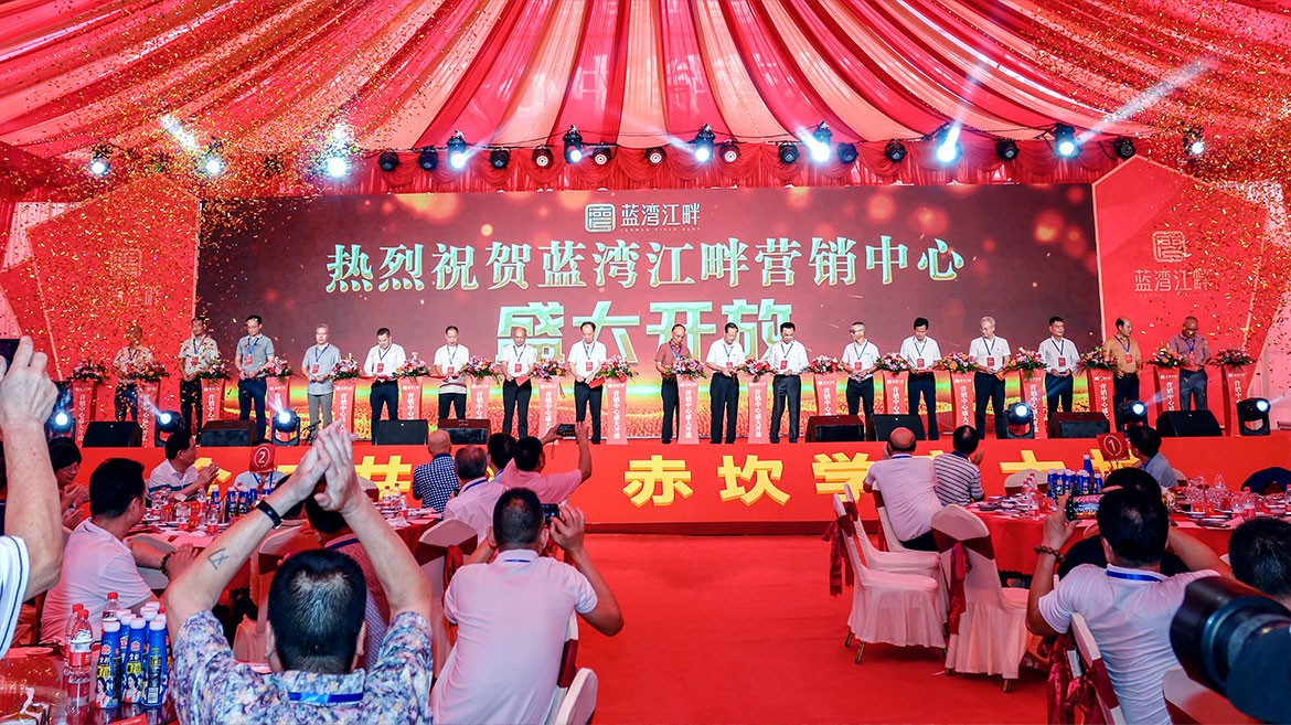 還邀請了領導嘉賓共同為藍灣江畔項目舉行剪彩儀式。隨著現場禮花與歡呼齊飛,赤坎芯·約61萬m2學府大城,繁華都市生活,自此磅礴開卷!